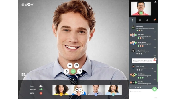 Die Abstimmung mit Kollegen in anderen Niederlassungen oder im Home Office erleichtert das Collaboration-Tool Swyx Meeting. Mitarbeiter an verschiedenen Standorten können ganz einfach per Webkonferenz zusammenarbeiten, miteinander sprechen, chatten oder Videotelefonie nutzen. Dabei können Sie auch den eigenen Bildschirm freigeben oder Dateien austauschen. Das macht die Abstimmung um vielfaches einfacher und ist nebenbei auch persönlicher. Das Beste daran: Mit Swyx Meeting können Sie Ihr Online-Meeting bequem über Ihren Browser starten, ohne zusätzliche Software herunterladen zu müssen.