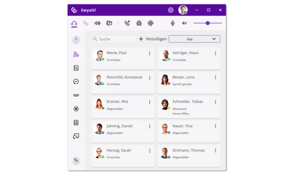 Mitarbeiter, die eine hohe Anzahl von eingehenden Anrufen annehmen und an Kollegen weiterleiten verlieren durch erfolglose Vermittlungsversuche viel Zeit. Auf der übersichtlichen Benutzeroberfläche von Swyx haben sie alle Kollegen jederzeit im Blick und können anhand des Präsenzstatus sofort sehen, ob jemand gerade erreichbar ist oder nicht. Erfolglose Kontaktversuche gehören so der Vergangenheit an.